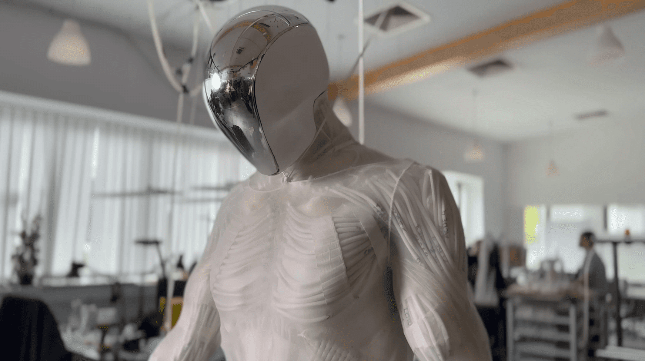 Protoclone Myofiber technology is a revolutionary bipedal android with foundational A\ model for musculoskeletal and central nerve systems developed by startup Clone Robotics, featuring over 1,000 Myofiber artificial muscles and 500+ sensors. This faceless, anatomically accurate humanoid, powered by hydraulics, mimics human skeletal structure to achieve lifelike motion and is designed to perform household tasks.
